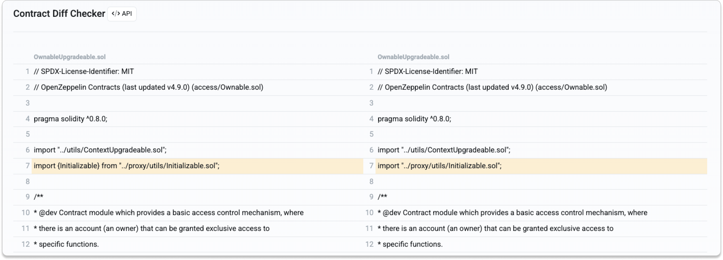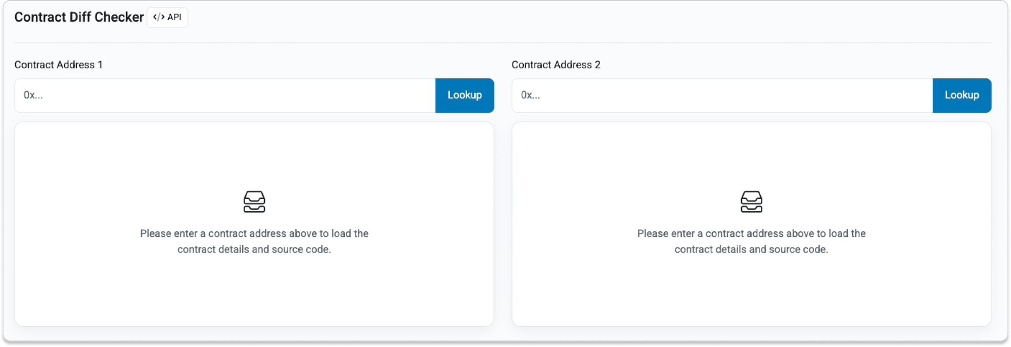 The Contract Diff Checker is a tool that lets you compare two smart contract source code files side by side. Any differences between the files will be automatically highlighted.