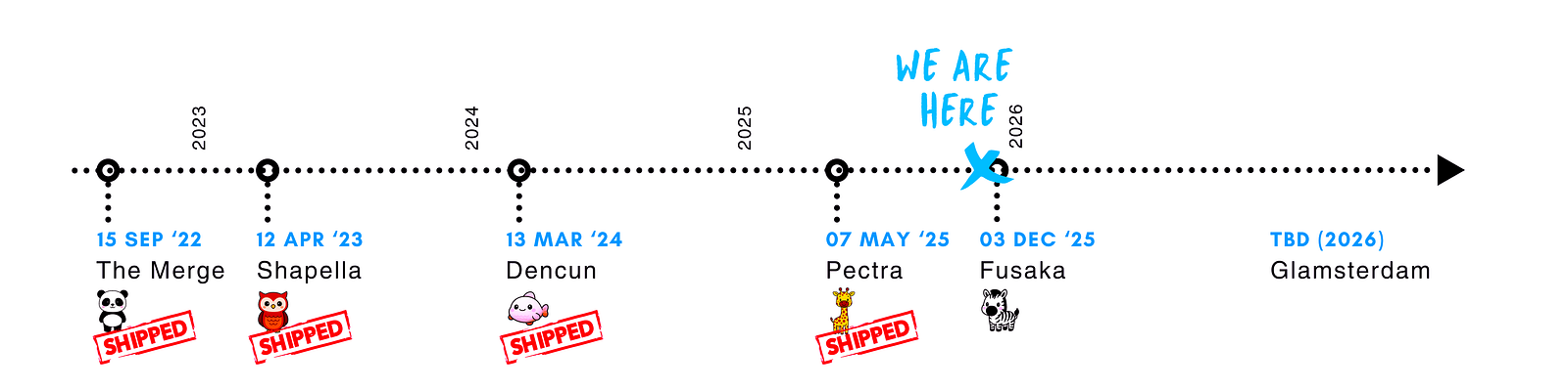 A theme across many upgrades is continuing a major shift in cost model. Early in Ethereum’s history, the protocol assumed data should be free and easy to store and transacting more fee-adjusted.