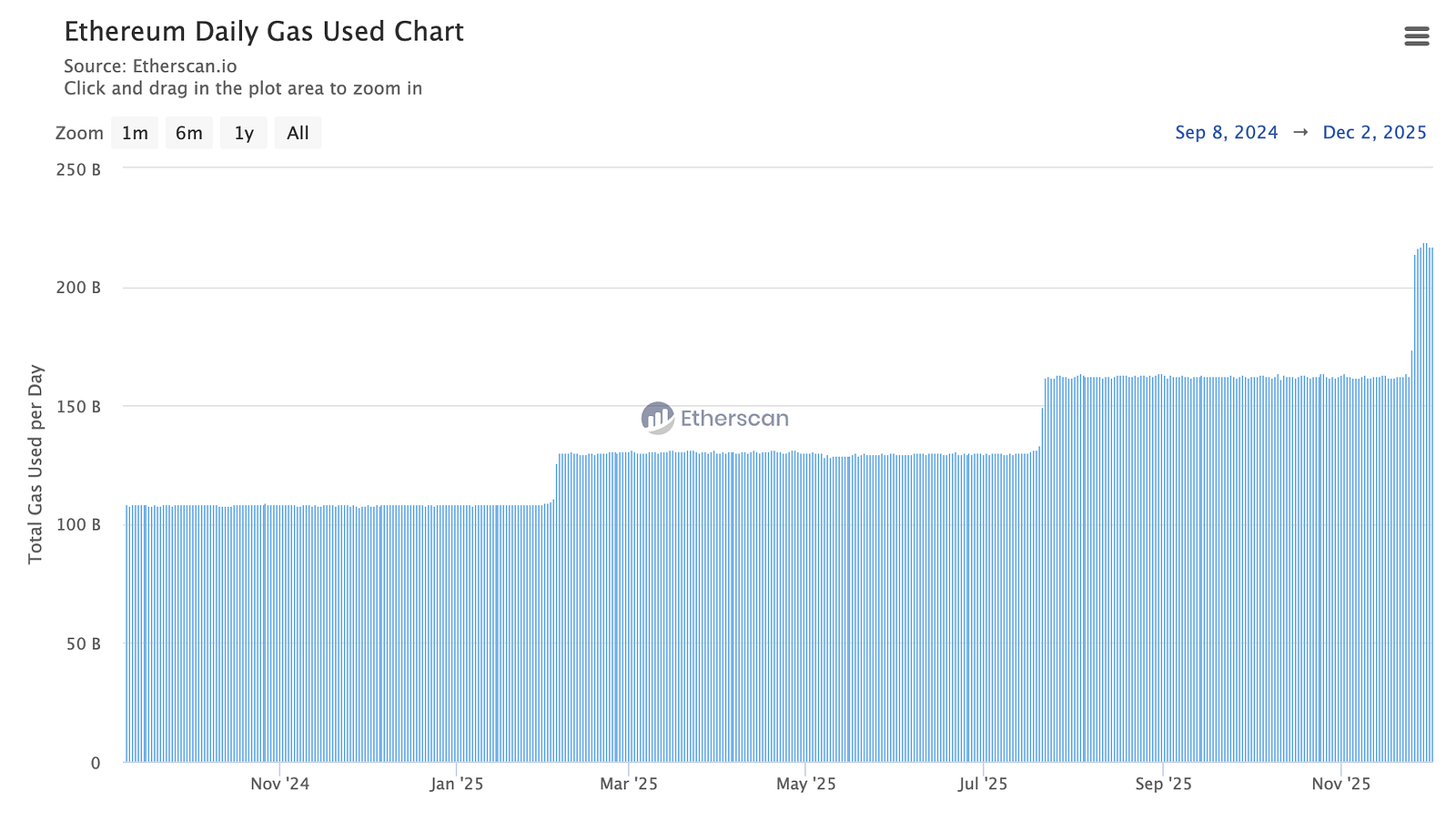 Some other upgrades relate to scaling mainnet (L1). One of these upgrades happened on mainnet before Fusaka went live: On November 25th, about a week ago, a majority of validators approved an increase to the block gas limit of 60 million. This was part of EIP-7935 and set for Fusaka, but many quickly noticed that this update came sooner with the approval of validators.