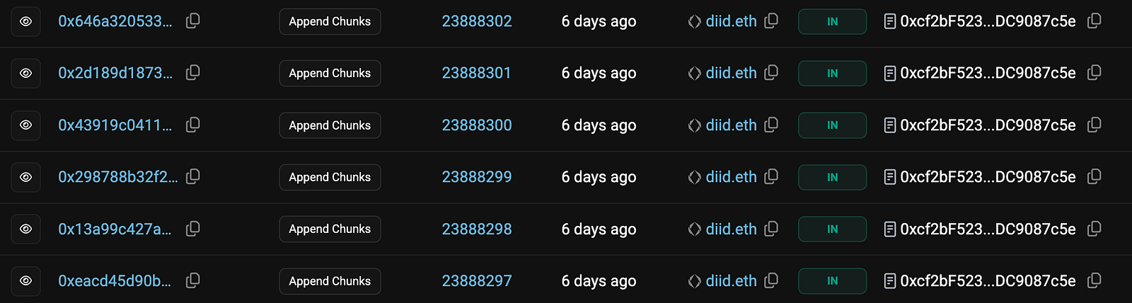 diid's video is alluring, mesmerizing in its visuals and audio. But this is a technical feat too. The interested reader can open up these transactions and look at how he is encoding the video — creating many contracts that successively hold and stitch back together the video data.