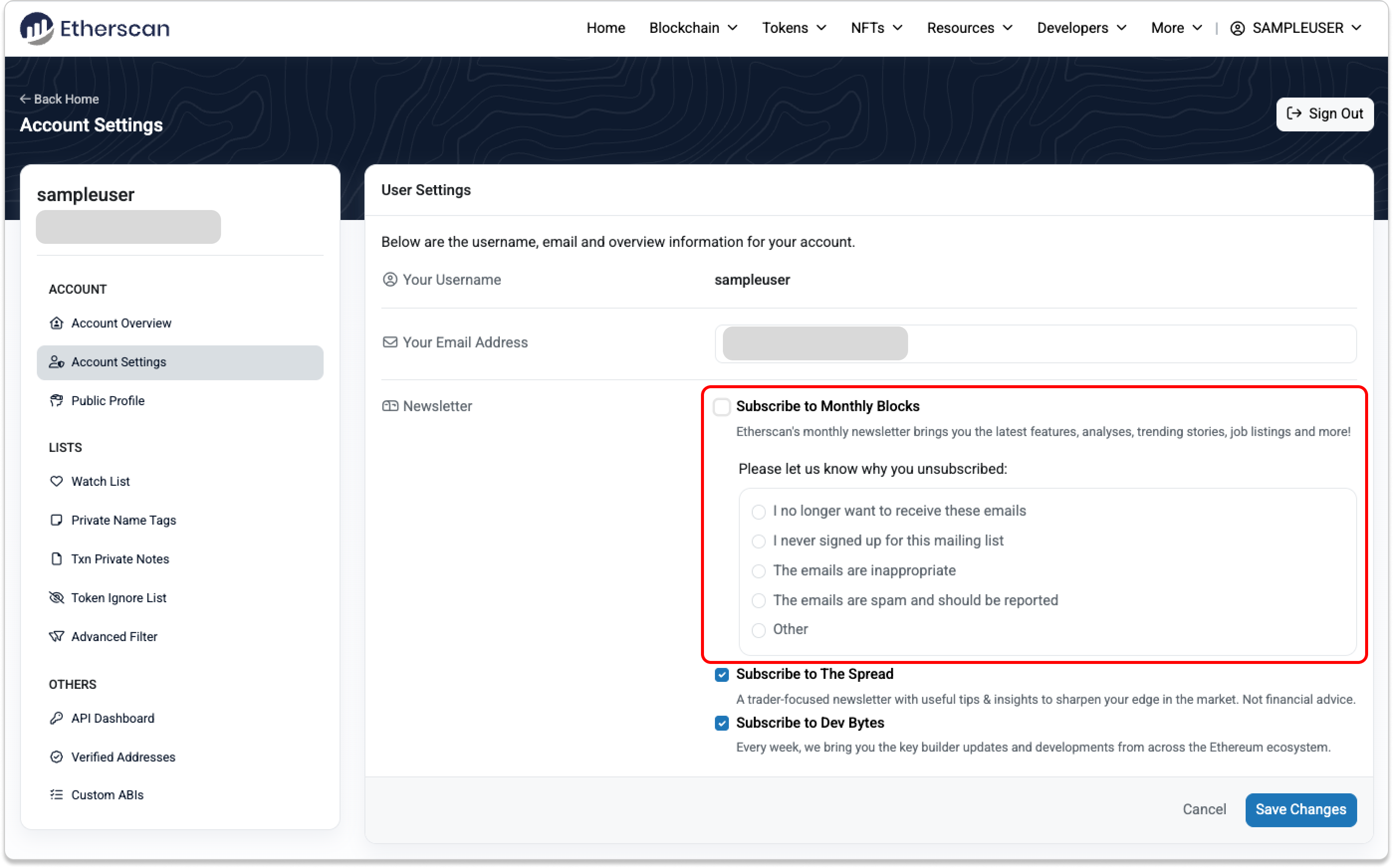 Once completed, you will stop receiving those selected newsletters from {{explorer}}.