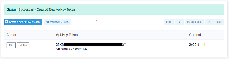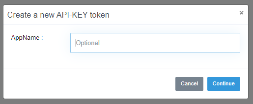 A pop up as below will appear when you click on “Create a new API-KEY token”. You can assign a name to the particular API key you intended to create.