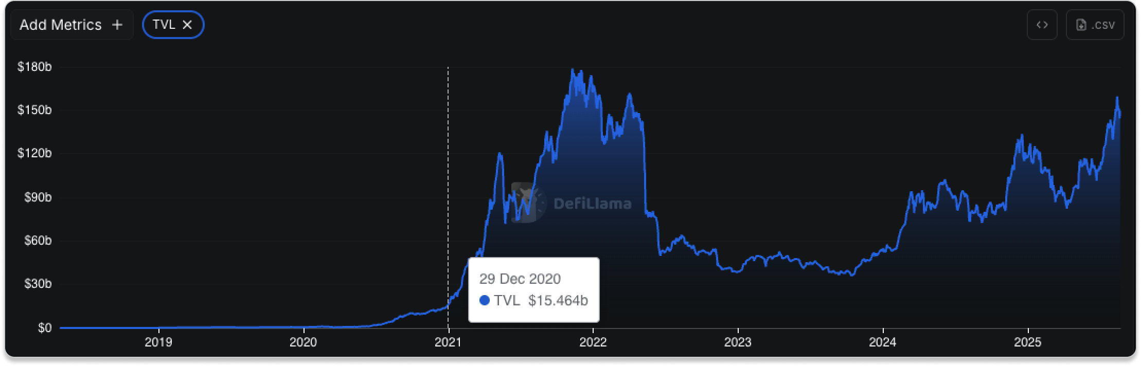 By the end of 2020, DeFi had surged to a significant milestone—with total value locked (TVL) hovering around $15 billion, marking a major moment of growth and traction for the sector.