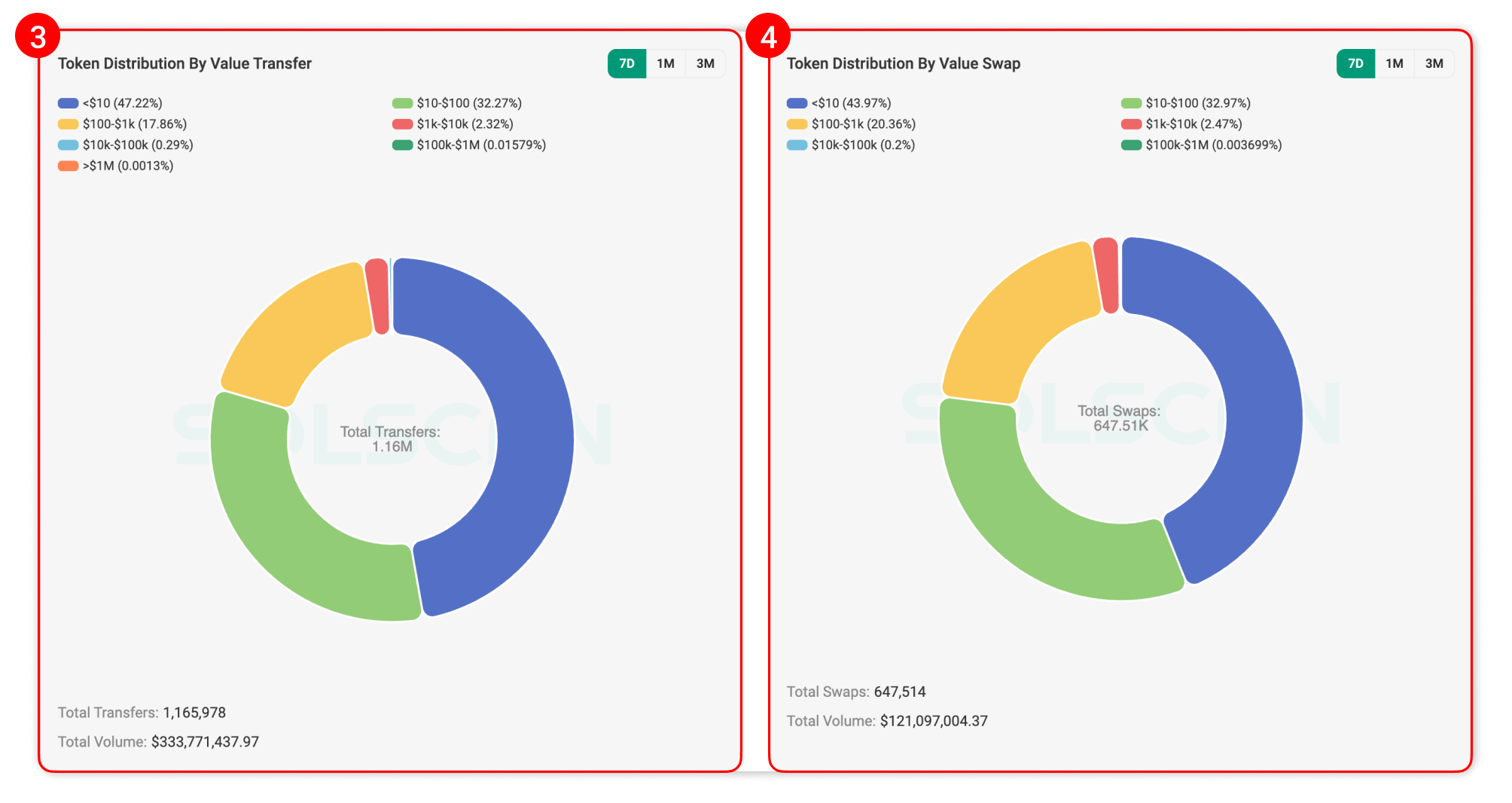 - Token Distribution by Value Swap: Displays the DEX swap volumes divided by value range.