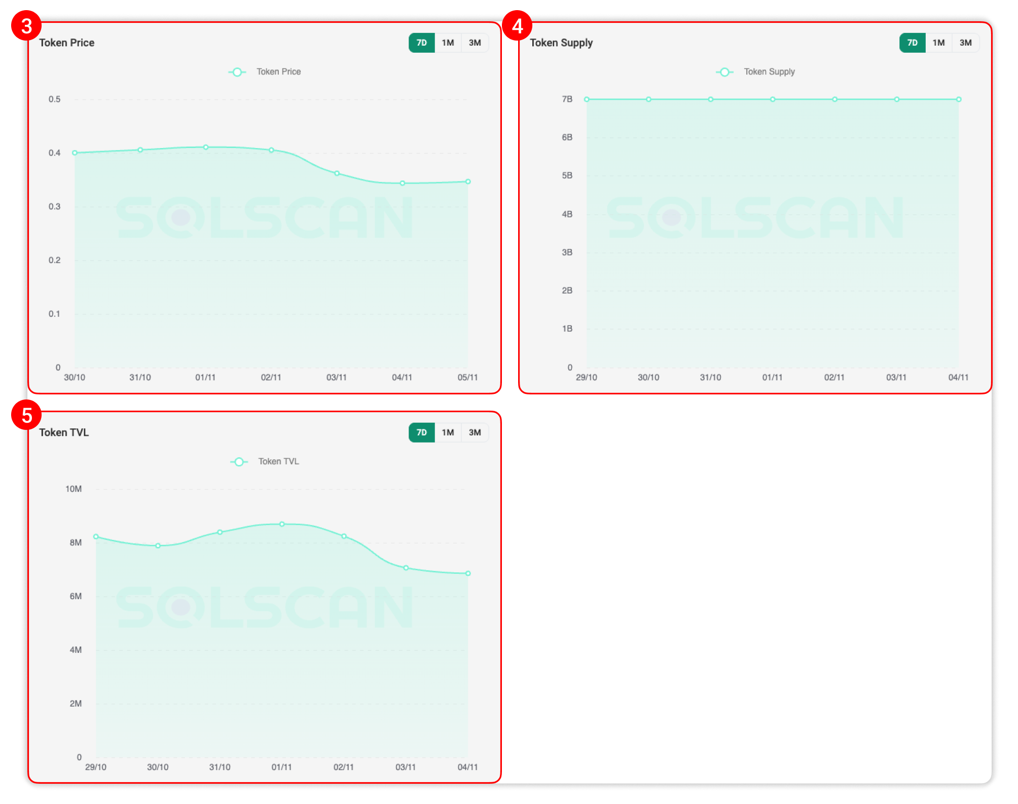 The Token Analytics tab is available on every Token page on Solscan.