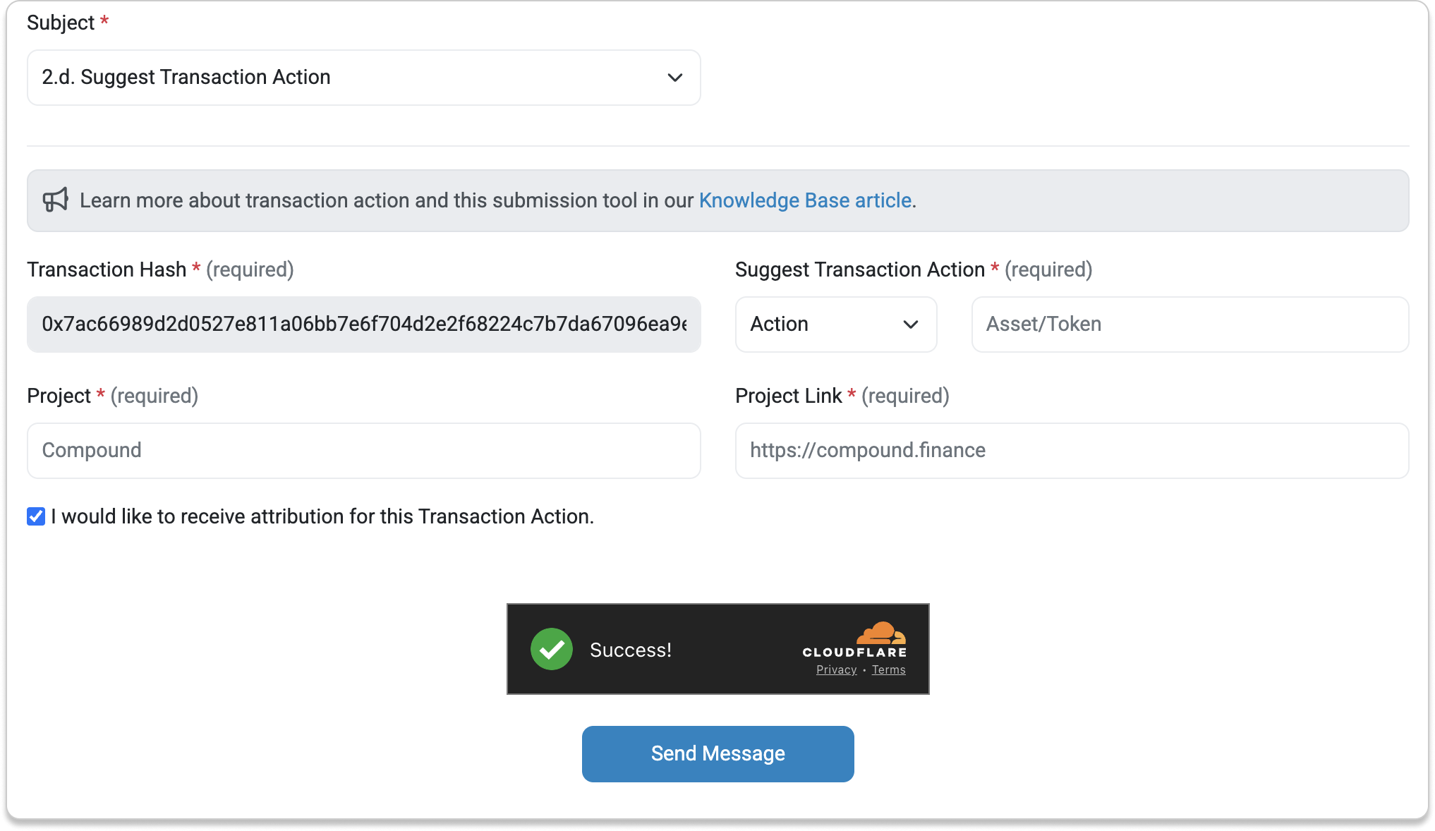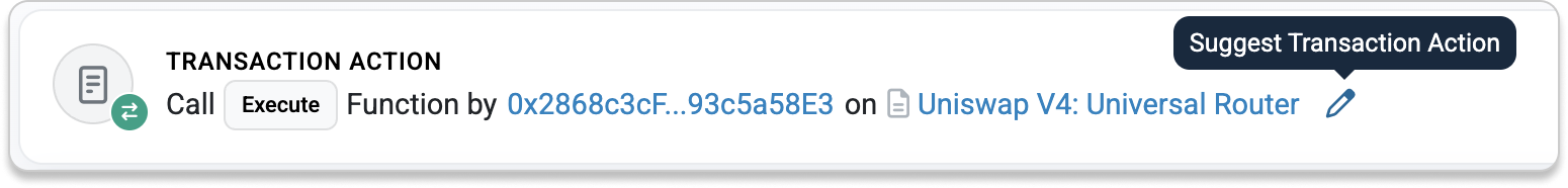 With countless new smart contracts deploying daily, many transactions lack transaction actions. If you come across one, you can suggest a transaction action to help future {{explorer}} users better understand the blockchain.
