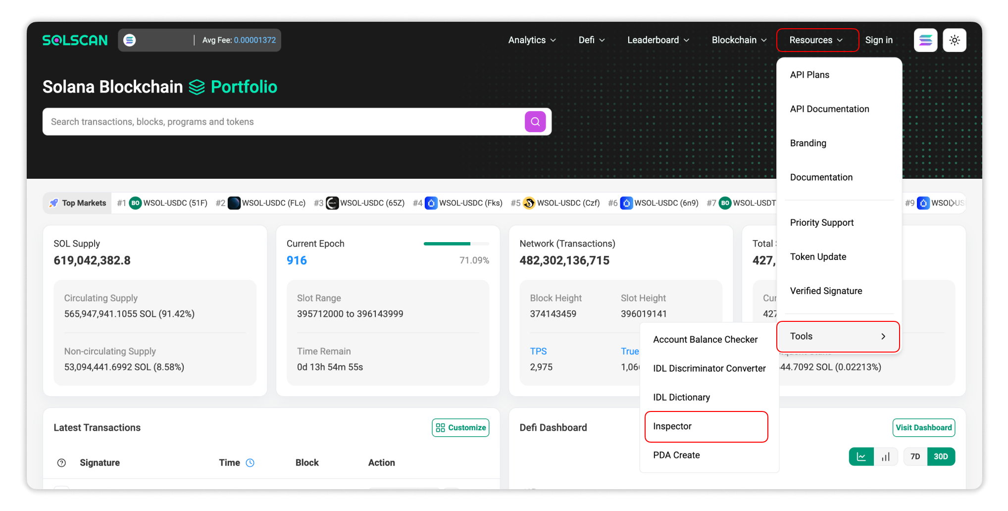 You can access the Transaction Inspector on Solscan through: