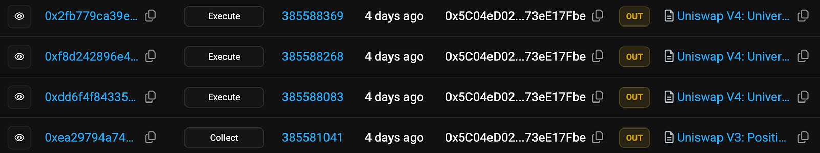 Consider an example on Arbitrum: Wallet 0x5c04ed02 engaged in repeated calls to Uniswap contracts. Many wallets like this one jump to an L2 and engage in repeat calls of DeFi-related or token contracts. We can zoom into the visual above and see this example wallet: