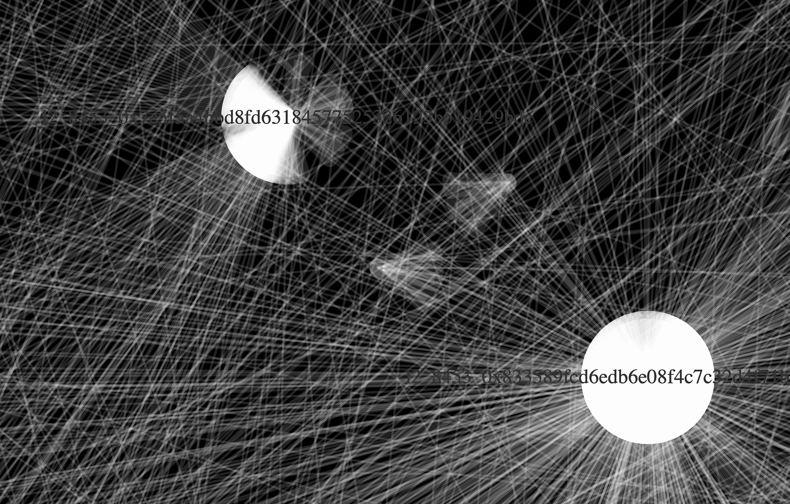 A network diagram is shown below with lines representing transactions going from the source to target address. I used R, jsonlite and igraph to munge and plot the graph.