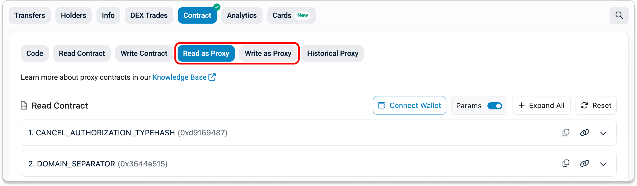 - Always practice caution when interacting with smart contracts on the {{chain}} network. The proxy contract may or may not be delegating the call to an external contract as detected, or the delegateCall function may not even be reachable. Trust, but verify.
